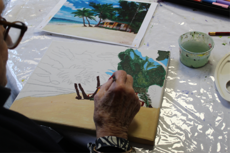 Les artistes de la résidence les Gobelins ont pour certains terminé leur projet et commencé un autre, et les autres ont continué. Nous avons même le privilège d'avoir une centenaire qui dessine très bien à la main levée et le résultat est juste génial.